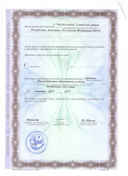 | Адрес местонахождения образовательной организации* | 368351, республика Дагестан, Гунибский район, село Коммуна, улица Чох-Коммунская 20-а |
