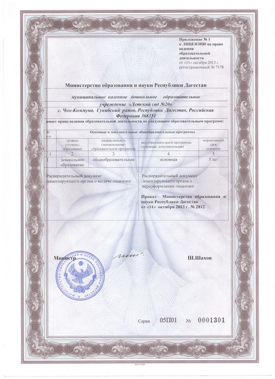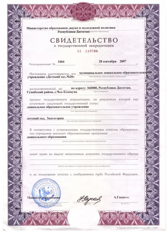 | Полное наименование образовательной организации* | Муниципальное казенное дошкольное образовательное учреждение "Детский сад №20" с.Чох-Коммуна Гунибского района республики Дагестан |